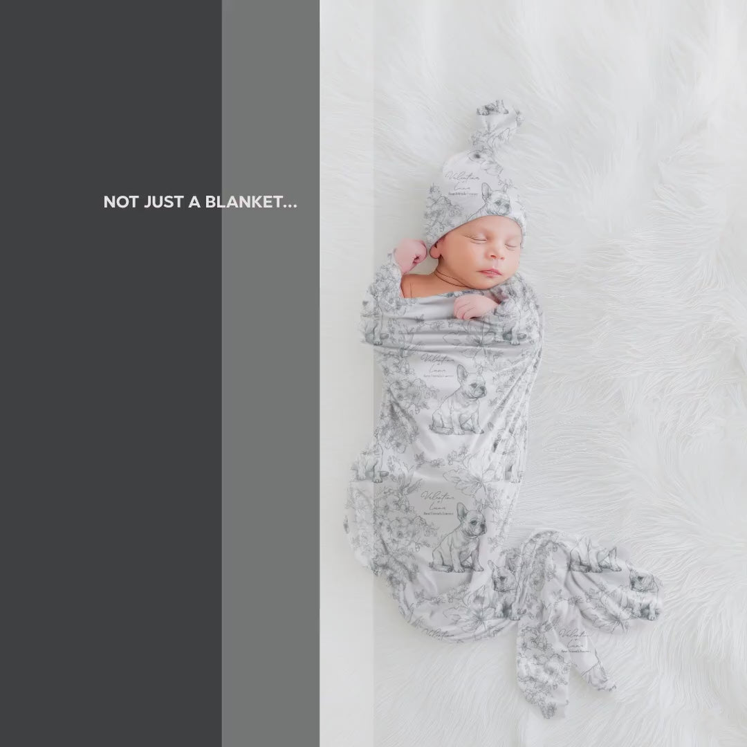 Personalized Toile French Bulldog Dog Swaddle Blanket Custom Baby Name and Pet Name Minky Nursery Gift Baby Shower New Best Friends Throw - Charles Alex