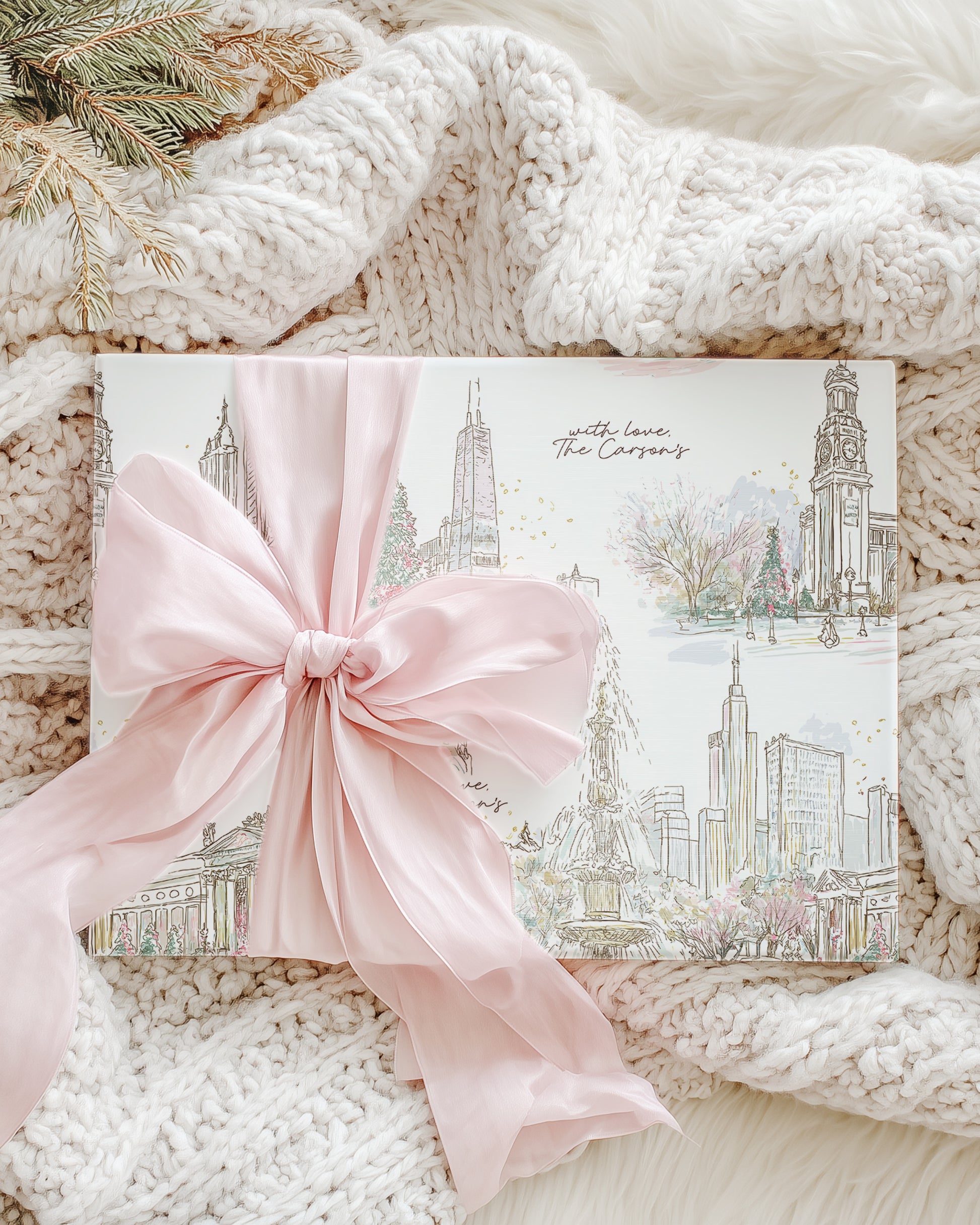 Wrap your gifts in city charm with this Personalized Christmas in Chicago Wrapping Paper, a custom holiday gift wrap featuring a festive skyline design. This seasonal décor style makes the perfect hostess present or holiday gift wrap for anyone who loves the Windy City.